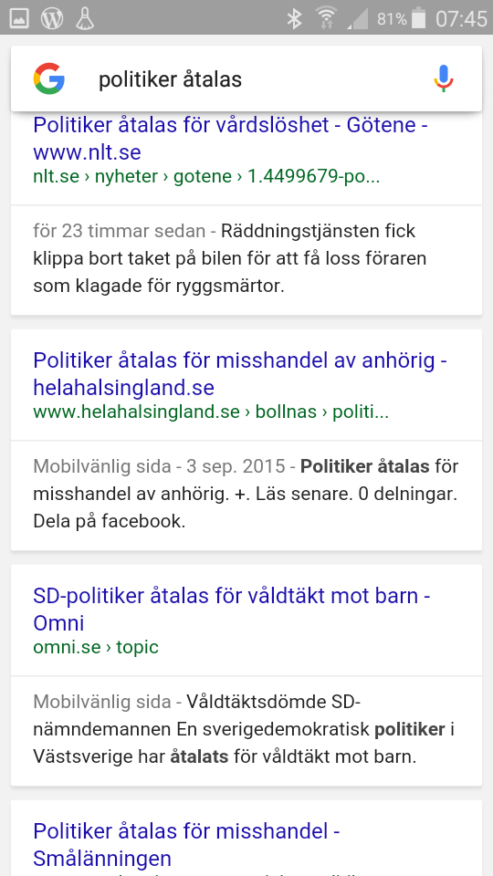 MEDIA. Vi vet att hatmedia inte agerar professionellt och opartisk när de granskar svensk politik men ibland blir det extra tydligt. Jag skrev i en tidnings sökruta efter ”politiker åtalas” och fick följande resultat, men det är säkert en tillfällighet.