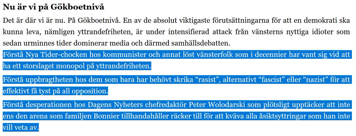 9. Ja svensk hatpress ska hållas under armarna även om snart ingen läsare vill betala för dyngan de skriver. Nästa steg är väl att lägga TV licensen på skatten också så att vi som avsagt oss att betala för propagandan inte kommer undan. Sen ska ju en ”jury” bedöma kvaliten och det betyder förstås att bara de som har de rätta åsikterna kan komma ifråga för stöd.