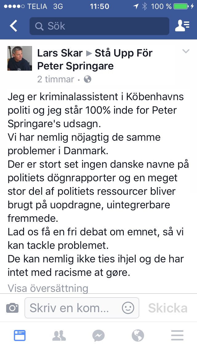 4. Peter Springare har fått mitt stöd och även en kommentar på Facebookgruppen ”Stå upp för Peter Springare”.