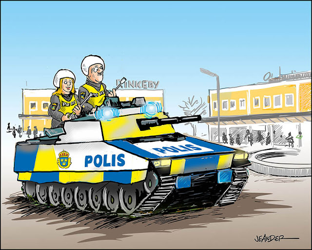 För att komma tillrätta med företeelsen som Anders Ygeman kallar ”en del stök” i Rinkeby och fler no-go-zon-kalifat i många andra kommuner runt om i hela Sverige ,,, Ja, då skulle polisen behöva mycket kraftfullare utrustning för att snabbare & effektivare klara sina uppgifter, t ex ett stort antal av detta välutrustade ”stök”-bekämparfordon: