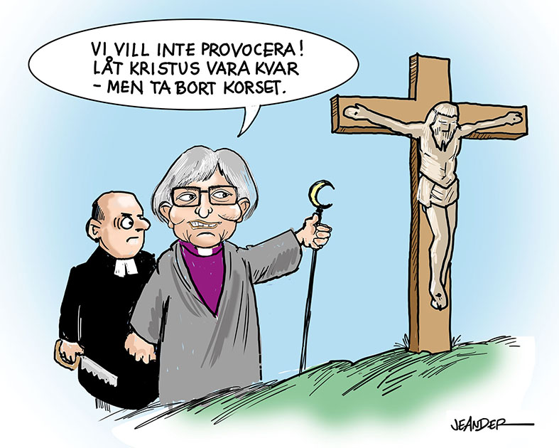 SVENSKA KYRKAN SÄLJER UT SIG BILLIGT TILL VÄRLDEN!!! SÄLJER UT JESUS, BIBELN OCH TRON, FÖR EN JUDASPENG!!! PROSTITUERAR ALLT HELIGT, OCH KORSFÄSTER SIG SJÄLVA!!! För vad????? För den politiska korrekthetens och djävulens skull. DE LÅTER SIG FRESTA SIG I ÖKNEN, som Jesus ALDRIG gjorde.