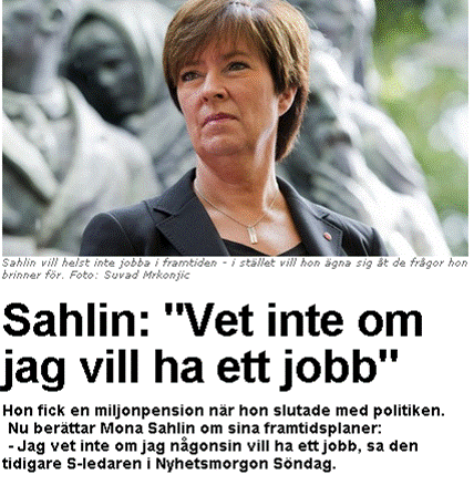 Mona Sahlin, har inga problem med ekonomin. Mona grundade Barbieklubben 1963 och har sedan dess levt på bidrag och skattebetalarna