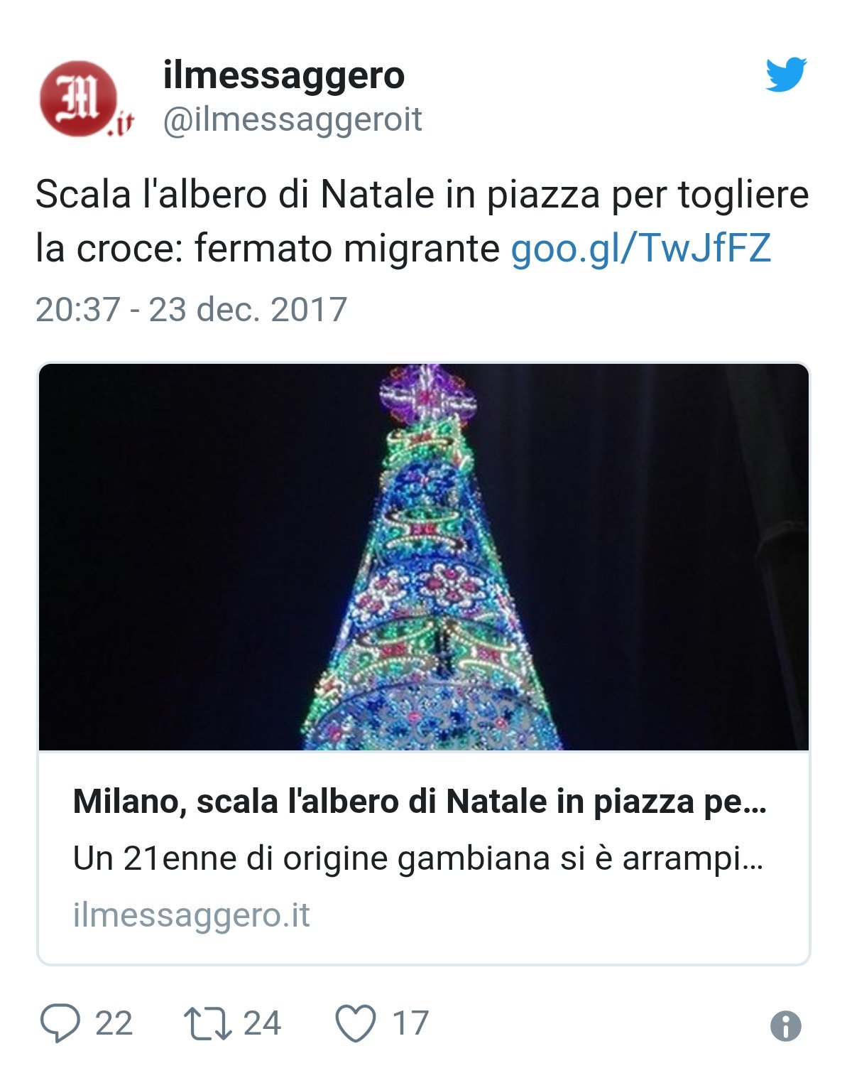 En migrant från Gambia försökte att ta ner korset från staden Milanos julgran.