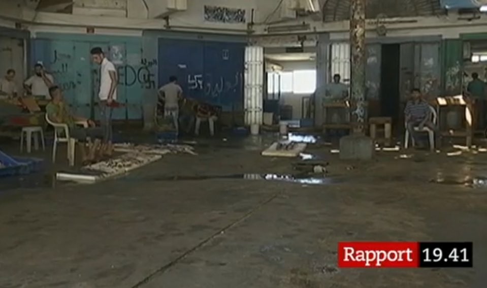 Här råkade SVT publicera palestiniers hakkors opixlade i en fiskhall i Gaza.