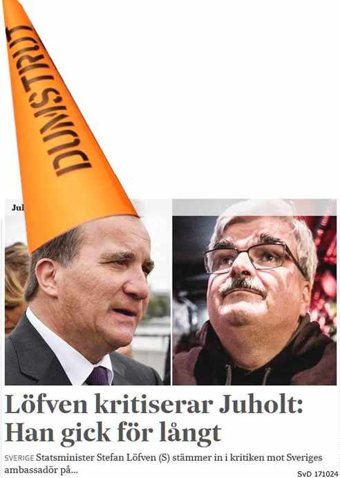 … och en dumstrut vilka han använder på S-partikansliets trollfabrik med adress Sveavägen 68, Stockholm
