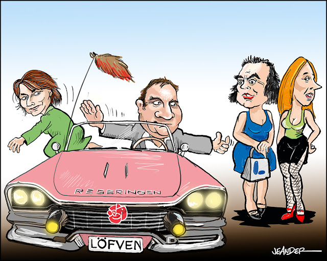 Lööfskan har redan sträckt ut sin ena hand och snart fattar hon med den andra hos Stefan Löfven.
