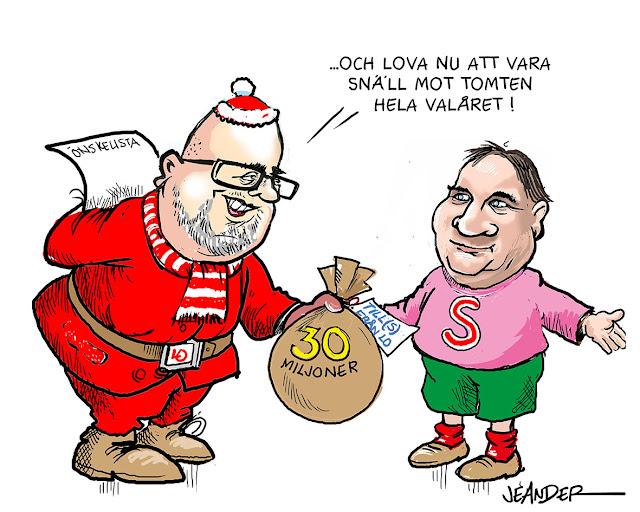 Men efter valdagen var Löfven inte alls snäll mot tomten Thorwaldsson och LO-medlemmarna när Stefan svekfullt skrev på JÖK-avtalet med C & L och avskaffade värnskatten för höginkomsttagarna.